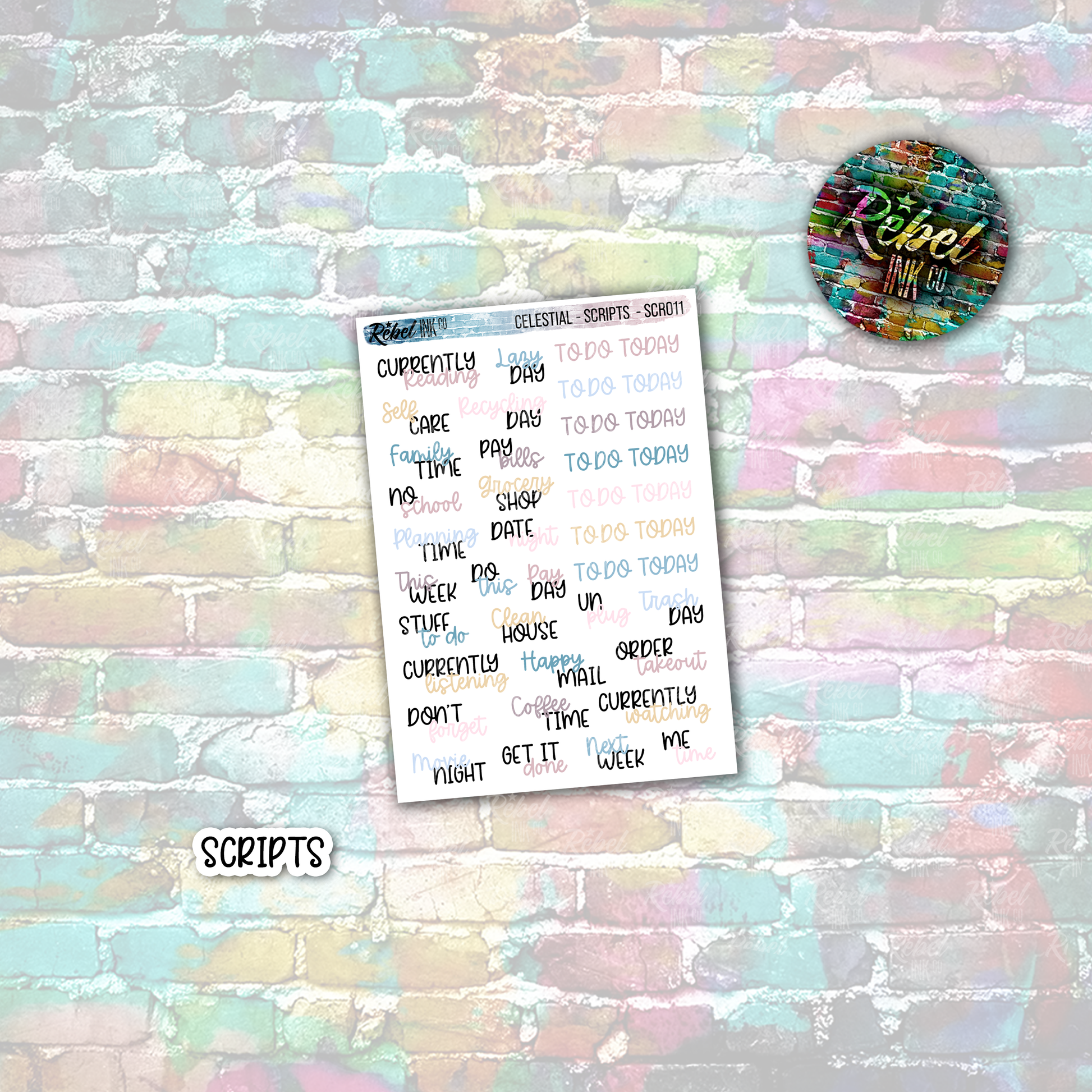 A sampler of useful script stickers for your weekly spreads.