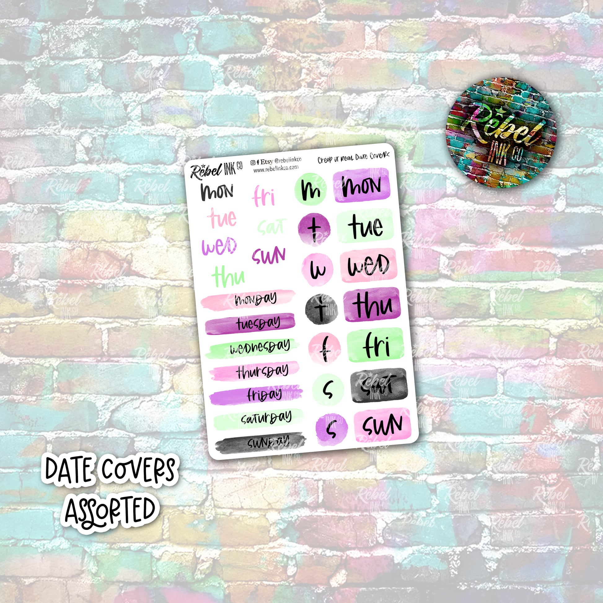 Day covers ideal for dating or re-dating your planner.