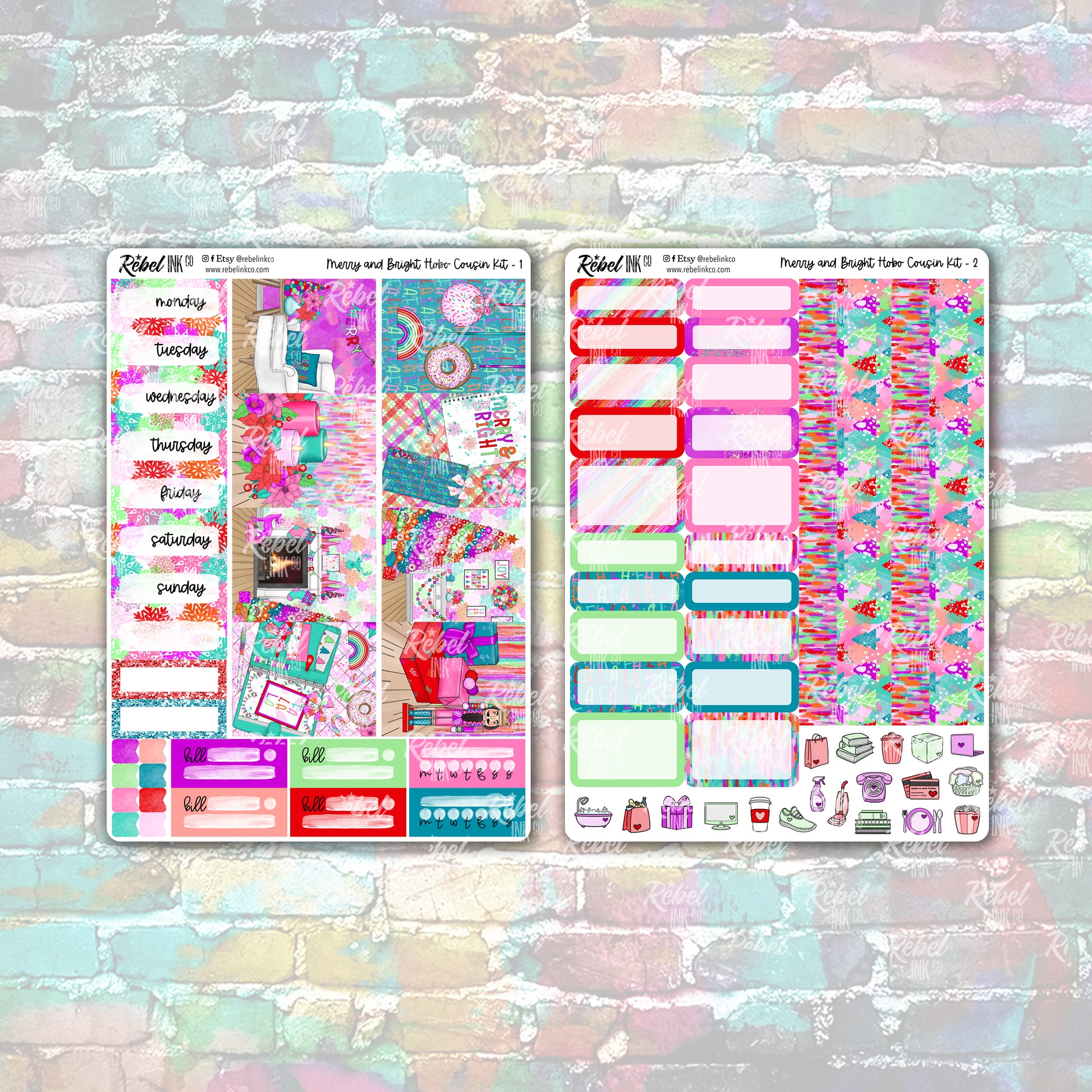 A Hobo Cousin weekly Sticker kit for your weekly planner spreads. Including 3 full sheets, this kit will give you a full weekly spreading your Cousin weekly pages, or you can use our add-on sheets to make this kit stretch much, much further than just one spread, depending on your planning style.