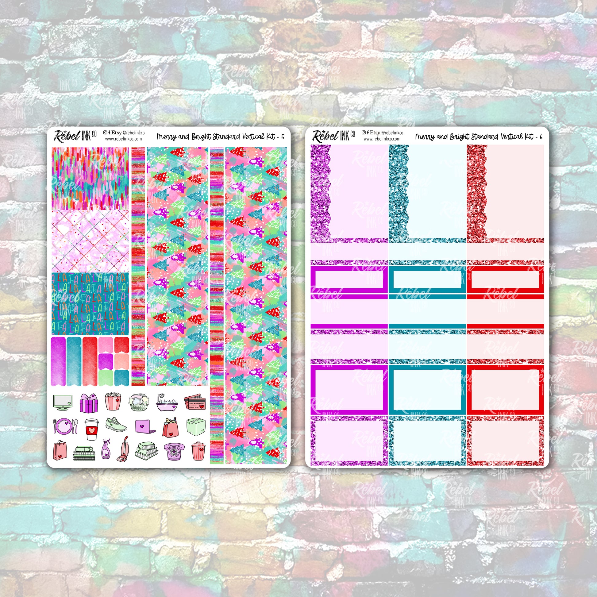 A standard vertical planner kit for your weekly planner spreads, including 6 full sheets of kit. If you like no white space in your planner, our kit format will fill your pages fully, or you can go for a less cluttered look and use our add-on sheets to make this kit stretch much, much further than just one spread, depending on your planning style.