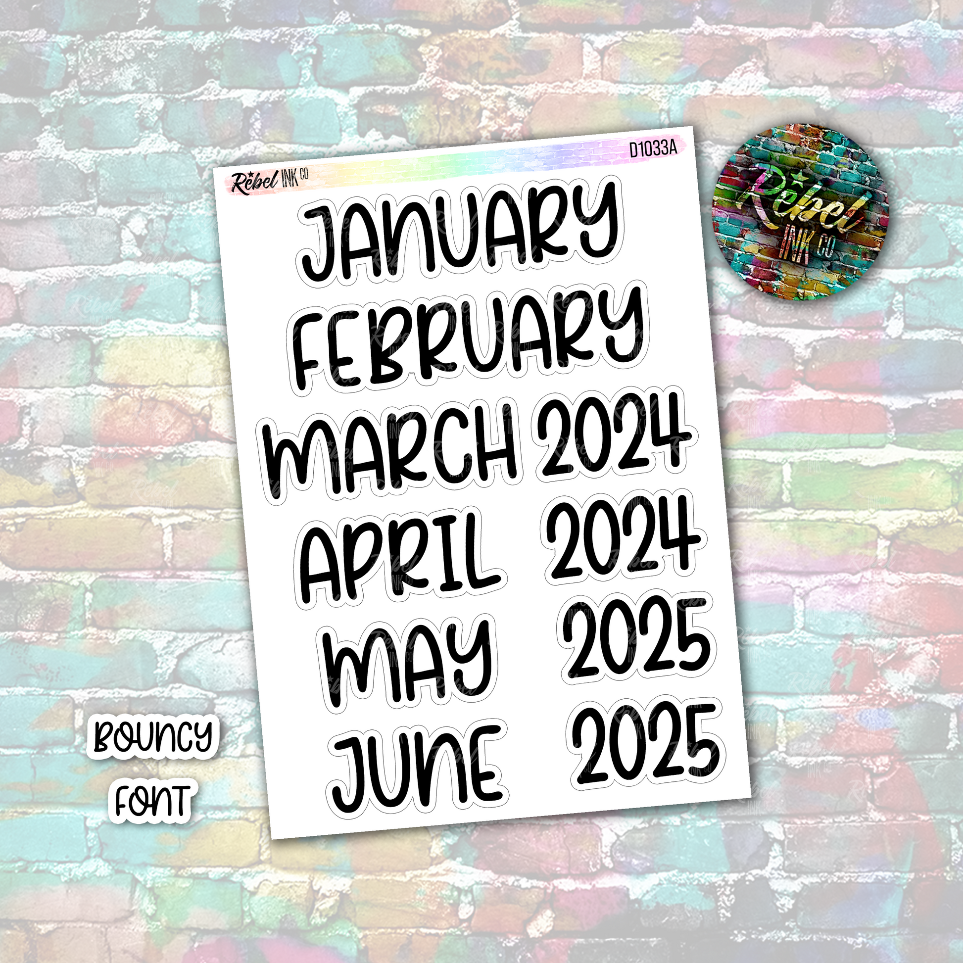 Month Stickers - Extra Large - Bouncy Font - C