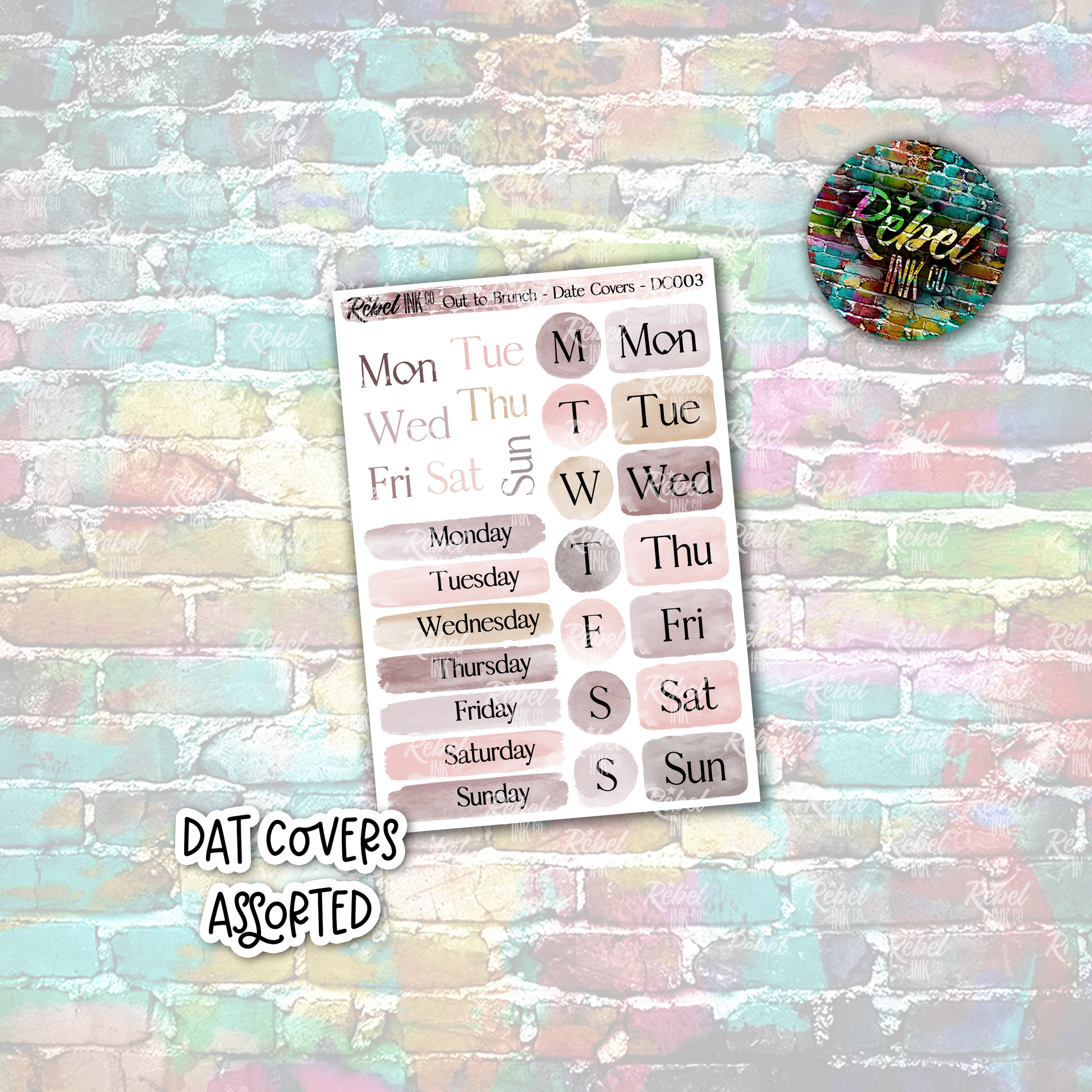 Day covers ideal for dating or re-dating your planner.