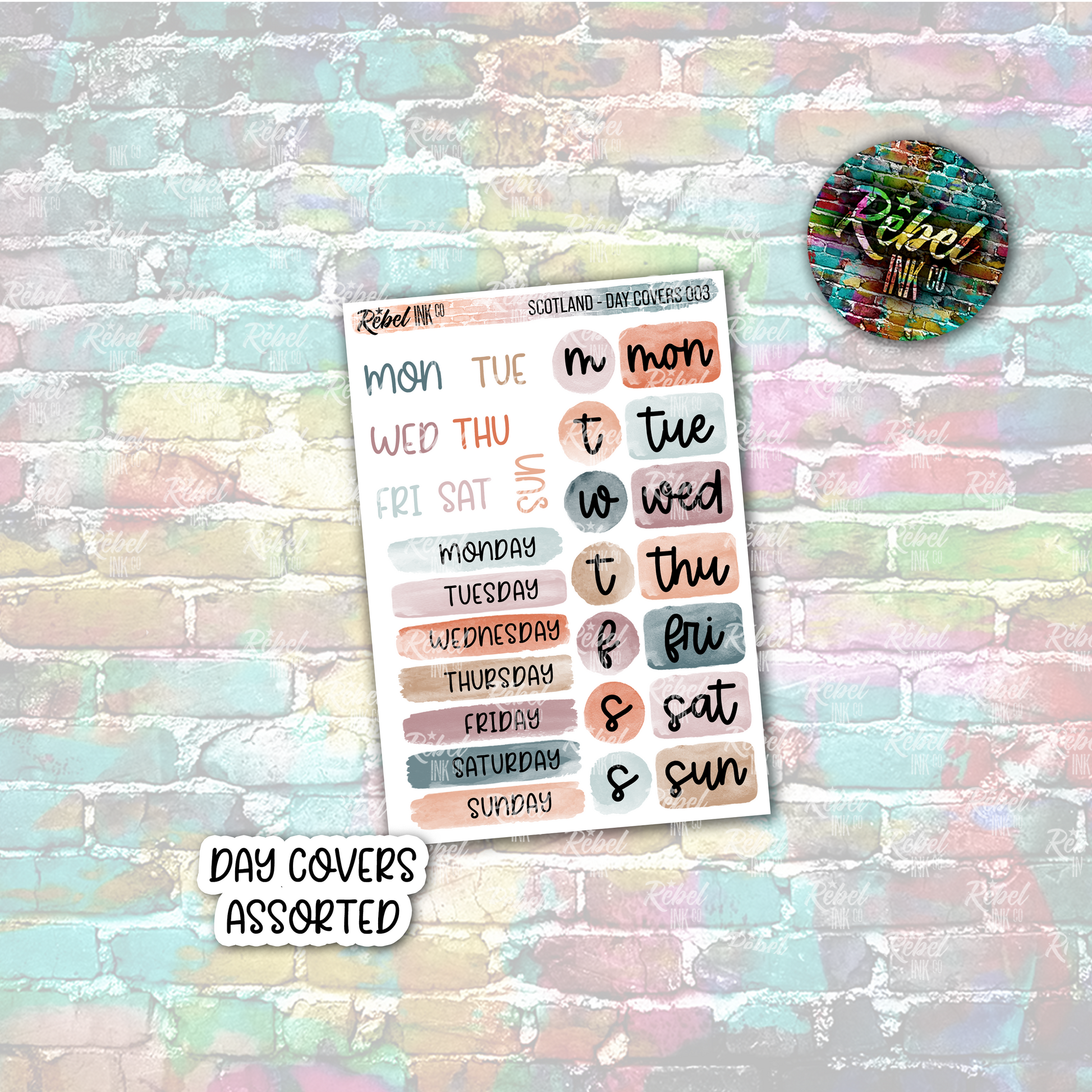 Day covers ideal for dating or re-dating your planner.